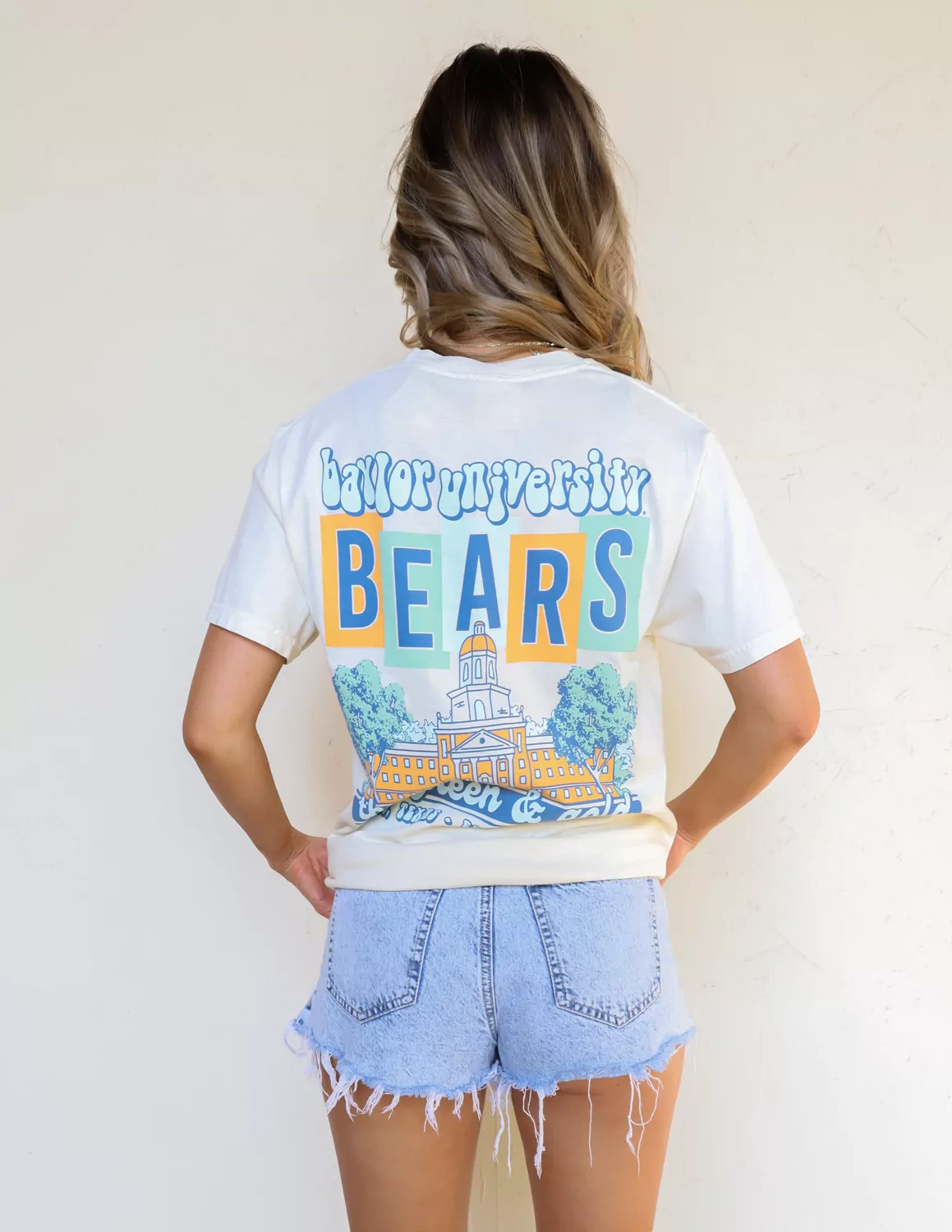 Groovy and spirited! We are loving this short sleeve Comfort Colors t-shirt. The groovy Baylor Bears design makes this shirt and must-have in Waco, Texas!